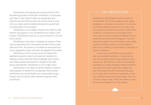 Whether you’re having a hectic morning, a nonstop day, or a busy evening, this guide to mindfulness for beginners shows you how to take a break and shift to a more peaceful mindset. No matter your experience level, the simple practices in this book can help you find calm, focus, reconnect with your emotions, or respond to challenging situations as they arise.