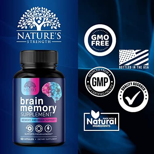 Brain Booster Supplement by Nature’s Strength: Memory support supplements, brain health, & focus support pills vitamins nutrition nootropics adults nootropic mind capsules plus women genius fog strength seniors neuro youthful extra cognitive pill men label lab boost vitaminas smart natural formula elevate concentration support clarity boosters